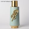 Với sự kết hợp của màu sắc nhẹ nhàng, tinh tế và chi tiết trang trí là lá vàng, bình cắm hoa decor mang đến một sự hòa hợp giữa thiên nhiên và con người. Màu sắc xanh mát của bình gốm sứ gợi lên cảm giác thanh thoát, trong lành, trong khi đó chi tiết lá vàng lại tạo ra sự nổi bật và mang lại may mắn cho gia chủ. Cả hai yếu tố này kết hợp với nhau tạo thành một sản phẩm decor trang trí phong thủy hoàn hảo.