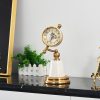 Đồng hồ để bàn và quả cầu pha lê trang trí kệ tủ.