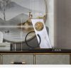 Chất liệu của sản phẩm bao gồm kim loại và đá cẩm thạch, kết hợp sự mạnh mẽ và tinh tế. Kim loại mang lại sự bền bỉ, chắc chắn, trong khi đá cẩm thạch giúp tạo điểm nhấn thanh thoát, sang trọng. Đặc biệt, đá cẩm thạch tự nhiên không chỉ có tính thẩm mỹ cao mà còn mang lại năng lượng tích cực, xua đuổi năng lượng xấu, góp phần tạo nên không gian sống hài hòa, đầy may mắn.