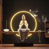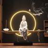 - Thiết Kế Tinh Xảo và Độc Đáo: Tượng Quan Âm được chế tác tỉ mỉ với những chi tiết sắc nét, tạo nên một sản phẩm hoàn hảo cả về hình thức lẫn chức năng phong thủy. Phía sau tượng là vòng tròn ánh sáng, tạo nên một không gian tĩnh lặng và trang nghiêm, giúp gia chủ cảm nhận được sự bình an và yên tĩnh.