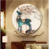 Tranh hươu nai tròn thích hợp treo trên kệ tủ decor